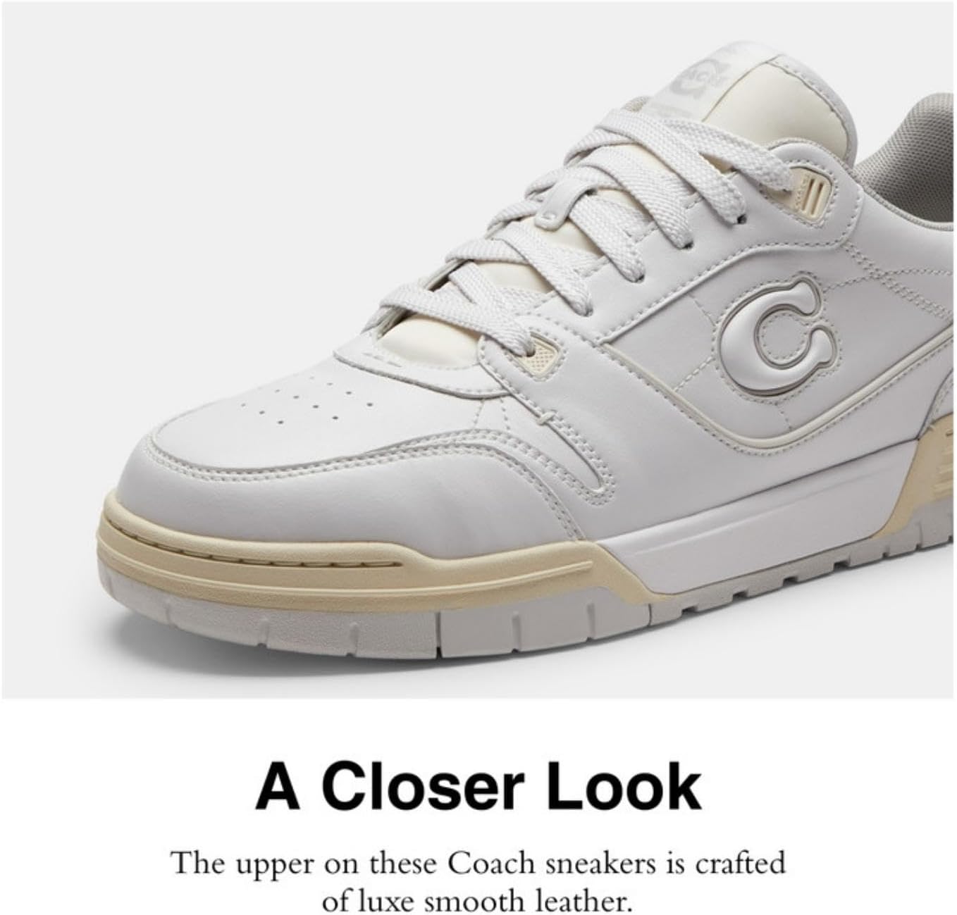 Our Coach SoHo Sneaker is inspired by the courageous free spirit of our hometown New York City and built to keep pace with life on the go. Crafted of smooth leather, it features a midsole that contains at least 28% bio-based content, created through a process that uses renewable sources in place of fossil-based. The comfortable style is finished with a grooved rubber outsole detailed with a map of Manhattan.