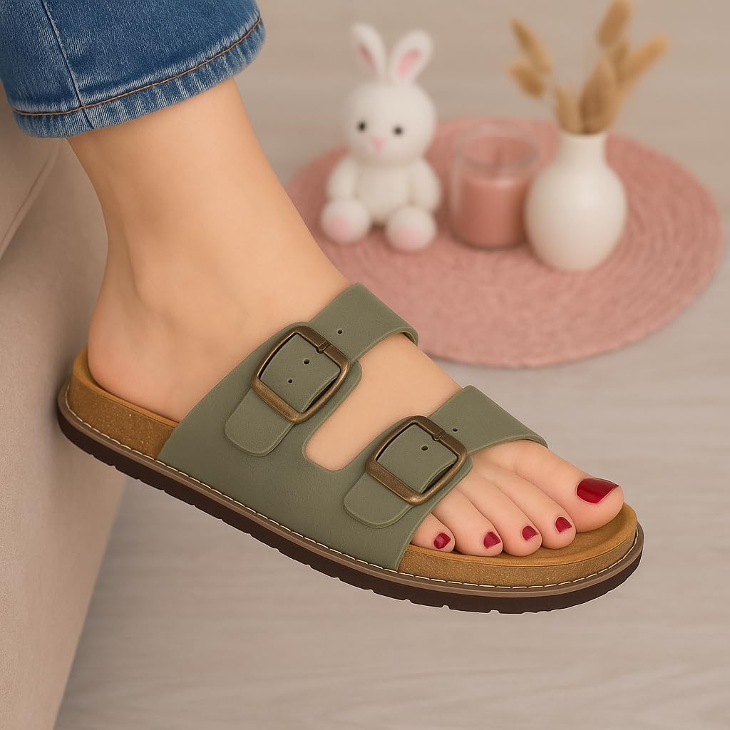 Step into effortless comfort with this classic two-strap slide sandal, crafted for all-day wear and reliable support. Featuring a molded cork footbed that conforms to the natural shape of your foot, this sandal promotes ergonomic alignment and arch support. The soft suede-lined insole keeps your feet dry and cushioned, while the double adjustable buckle straps let you personalize the fit. Finished with a textured EVA outsole for long-lasting grip, this sandal combines timeless design with modern functionality. Whether you’re relaxing at home, running errands, or heading on a summer getaway, this is your go-to slide for everyday ease and comfort.
