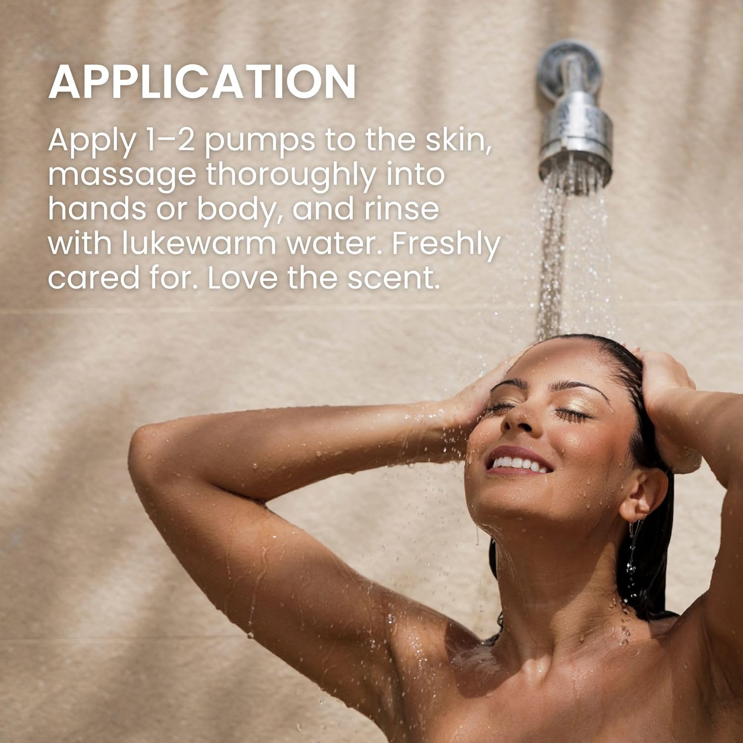 Apply one pump of soap to wet skin, lather, massage in and enjoy the fragrance. Then rinse hands or body thoroughly with lukewarm water and dry.