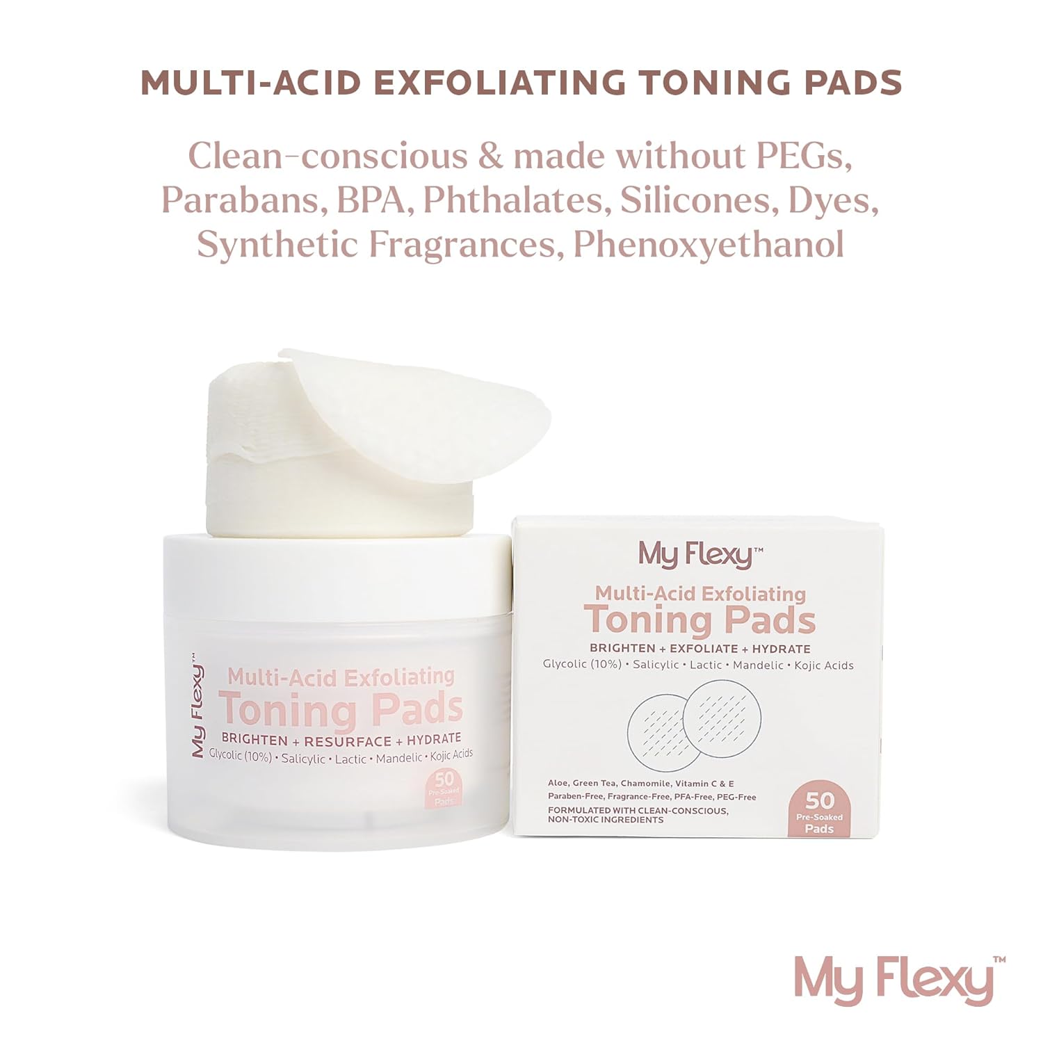 Multi Acid Toner Pads, Exfoliating Face Pads with Glycolic, Lactic, Mandelic, Kojic, & Salicylic Acid. Skin Pore Reducing, Toning, Resurfacing facial treatment for Wrinkles & Dull skin – 50 Count