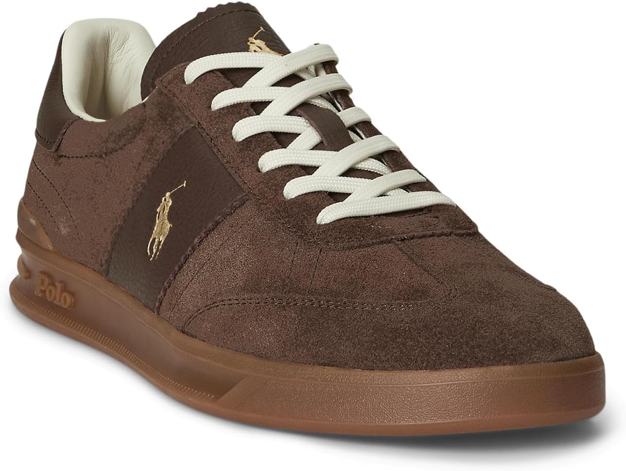 Give your footwear game a stylish flair with the Polo Ralph Lauren Heritage Aera Suede Sneaker. This lace-up sneaker features a padded mesh insole for superior comfort and a reinforced heel with a leather heel tab for added durability. The leather stripe at the side add a touch of classic elegance, while the Signature Pony is embossed at the tongue, and “Polo” is embossed at the side and heel for a distinctive look. With a double-faced lining and mesh-lined tongue and collar, this sneaker ensures breathability and a secure fit. Suede/leather upper. Polyester lining. Padded insole. Rubber outsole.