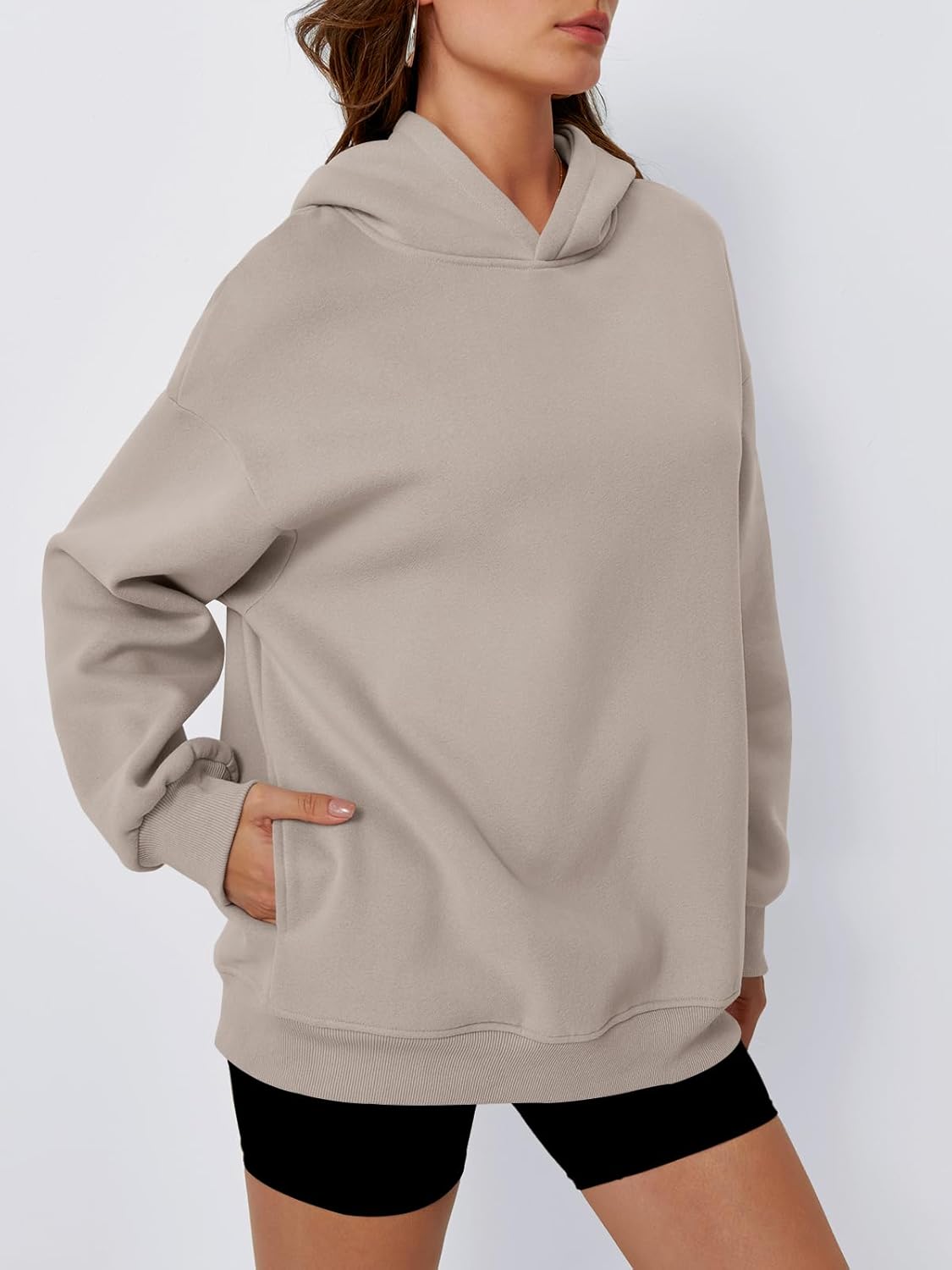 Customers find the sweatshirt comfortable, well-made, and incredibly soft with a lovely fuzzy inside. They appreciate its fit, noting it’s not tight around the neck, and like its color, with one customer mentioning it pairs nicely with leggings. The hoodie receives positive feedback for its style, with one customer noting it’s perfect for colder months. The oversized fit receives mixed reviews, with some finding it perfectly oversized while others say the hood is small. Customers express disappointment about the lack of pockets.